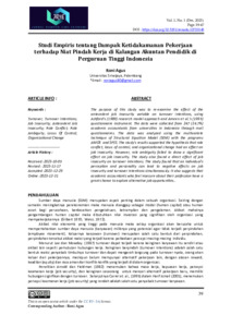 Roni, Agus (2023) Studi empiris tentang dampak ketidakamanan pekerjaan terhadap niat pindah kerja di kalangan akuntan pendidik di perguruan tinggi Indonesia. Jurnal Rumpun Ilmu Ekonomi (JRIE), 1 (1): 5. pp. 39-47. ISSN 3046-8639