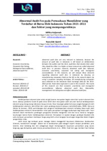 Miftha, Huljannah and Nasrullah, Djamil (2024) Abnormal audit fee pada perusahaan manufaktur yang terdaftar di Bursa Efek Indonesia tahun 2021-2022 dan faktor yang mempengaruhinya. Jurnal Rumpun Ilmu Ekonomi (JRIE), 2 (1): 1. pp. 48-65. ISSN 3046-8639