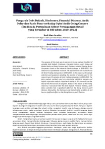 | Uncontrolled Keywords: | Debt default, Disclosure, Financial distress, Audit delay, Rasio pasar, Opini audit going concern, Debt management, Disclosure in accounting, Ratio analysis |