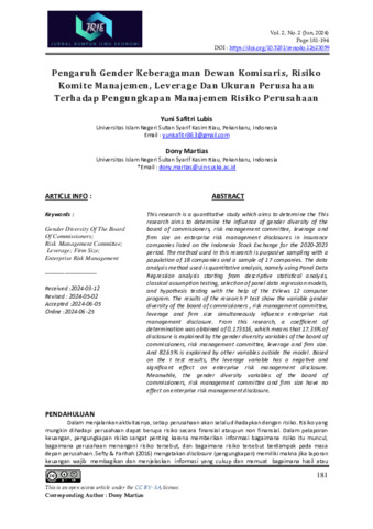Yuni, Safitri Lubis and Dony, Martias (2024) Pengaruh gender keberagaman dewan komisaris, risiko komite manajemen, leverage dan ukuran perusahaan terhadap pengungkapan manajemen risiko perusahaan. Jurnal Rumpun Ilmu Ekonomi (JRIE), 2 (2): 5. pp. 181-194. ISSN 3046-8639