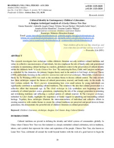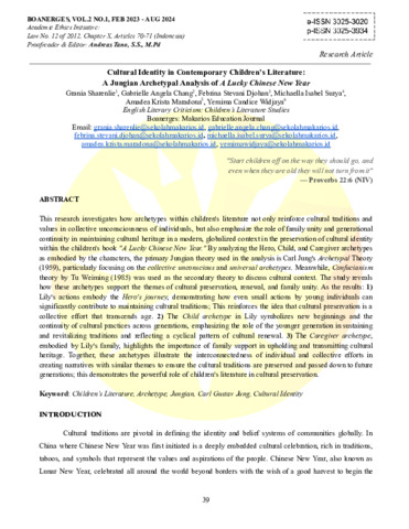Grania, Sharenlie and Gabrielle, Angela Chang and Febrina, Stevani Djohan and Michaella, Isabel Surya and Amadea, Krista Maradona and Yemima, Candice Widjaya (2024) Cultural identity in contemporary children’s literature: a jungian archetypal analysis of a Lucky Chinese New Year. Makarios Education Journal (BOANERGES), 2 (1): 4. pp. 39-51. ISSN 3025-3934