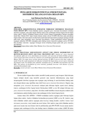 Anni Rahmat, AR and Roziq Himawan, rh (2011) PENGARUH DISKONTINUITAS STRUKTUR PADA DISTRIBUSI TEGANGAN PADA DESAIN RPV. PENGARUH DISKONTINUITAS STRUKTUR PADA DISTRIBUSI TEGANGAN PADA DESAIN RPV. pp. 502-510. ISSN 0854-2910