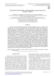 R., Murrwani and R., Anggraeni and M.H., Muslih and A.O., Yogantara and Mulyono, Mulyono (2024) Egg production, blood profile, and histopathology in Japanese quail with phytogenic additives. Tropical Animal Science Journal, 47 (3): 7. pp. 321-332. ISSN 2615-787X