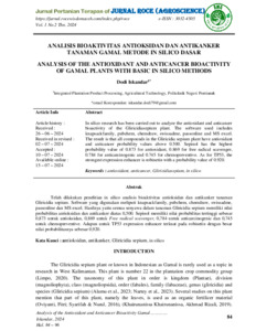 In silico research has been carried out to analyze the antioxidant and anticancer bioactivity of the Gliricidiasepium plant. The software used includes knapsackfamily, pubchem, chemdraw, swissadme, passonline and MS excel. The result is that all compounds in the Gliricidia sepium plant have antioxidant and anticancer probability values above 0.500. Sepinol has the highest probability value of 0.873 for antioxidant, 0.869 for free radical scavenger, 0.784 for anticarcinogenic and 0.745 for chemopreventive. As for TP53, the strongest expression enhancer is robinetin with a probability value of 0.920.