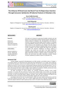 This study was conducted to determine the effect of Brand Love and Brand Trust on Repurchase Intention through Consumer Satisfaction of Indomie products in Pekanbaru City. The population in this study are consumers who know and have bought Indomie products. In sampling using nonprobability sampling with purposive sampling technique so that a sample of 114 respondents was obtained. The data analysis method uses Structural Equation Modeling (SEM) with the SmartPLS version 4 program. The results showed that Brand Love and Brand Trust affect the Consumer Satisfaction of Indomie products in Pekanbaru City. Brand Love and Brand Trust affect Repurchase Intention in Indomie products in Pekanbaru City. Consumer Satisfaction affects Repurchase Intention in Indomie products in Pekanbaru City. Brand Love and Brand Trust affect Repurchase Intention through Consumer Satisfaction of Indomie products in Pekanbaru City.