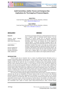 Indah, Pitria and Desrir, Miftah (2024) Audit committee, auditor tenure and company size: implications for the integrity of financial reports. InJEBA : International Journal of Economics, Business and Accounting, 2 (2): 6. pp. 202-211. ISSN 3032-3754