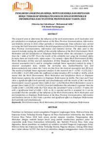 | Uncontrolled Keywords: | Lingkungan kerja, Motivasi kerja, Kepuasan kerja, Kinerja pegawai, Work environment, Employee performance, Work motivation |