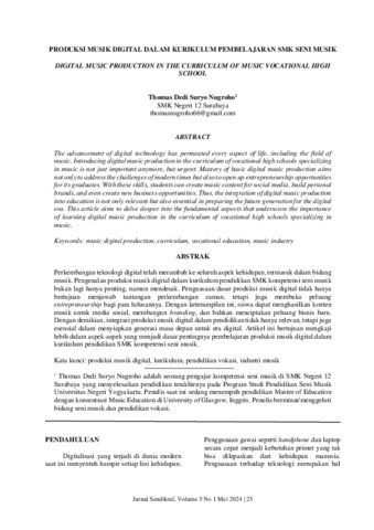 Thomas, Dedi Suryo Nugroho (2024) Produksi musik digital dalam kurikulum pembelajaran SMK Seni Musik. Jurnal Pendidikan Seni dan Industri Kreatif (Sendikraf), 5 (1): 4. pp. 25-31. ISSN 2746-3605