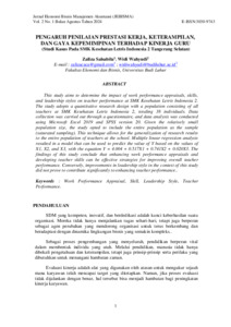 | Uncontrolled Keywords: | Work performance appraisal, Skill, Leadership style, Teacher performance, Work performance, Teaching skills, Leadership |