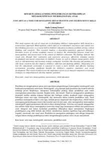 Penelitian ini mengeksplorasi peran seni rupa dalam pengembangan keterampilan metakognitif anak berdasarkan pendekatan neurosains. Metakognitif, yang merujuk pada kesadaran dan kontrol individu terhadap proses berpikirnya, merupakan keterampilan penting dalam pendidikan anak untuk meningkatkan pemecahan masalah, berpikir kritis, dan kreatif. Studi ini menggunakan pendekatan deskriptif analitis melalui tinjauan literatur dari berbagai sumber akademik untuk menganalisis hubungan antara seni rupa, metakognitif, dan neurosains dalam konteks pendidikan anak. Hasil penelitian menunjukkan bahwa seni rupa, melalui proses eksploratif dan ekspresifnya, efektif dalam merangsang perkembangan neuron dan koneksi saraf di otak anak, serta meningkatkan keterampilan metakognitif seperti pemantauan diri dan evaluasi strategi belajar. Aktivitas seni seperti menggambar dan melukis tidak hanya meningkatkan kreativitas tetapi juga kemampuan refleksi dan perencanaan anak. Integrasi seni dalam kurikulum pendidikan diharapkan dapat menciptakan lingkungan pembelajaran yang lebih holistik dan efektif, memberikan manfaat signifikan bagi perkembangan kognitif, emosional, dan sosial anak. Penelitian ini menegaskan pentingnya seni sebagai komponen integral dalam strategi pembelajaran untuk mengembangkan potensi siswa secara menyeluruh.