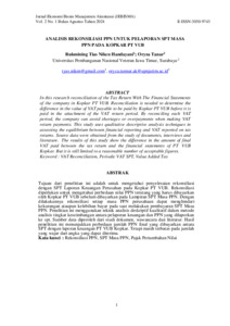 Tujuan dari penelitian ini adalah untuk mengetahui penyelesaian rekonsiliasi dengan SPT Laporan Keuangan Perusahan pada Kopkar PT VUB. Rekonsiliasi diperlukan untuk mengetahui perbedaan nilai PPN terutang yang harus dibayarkan oleh Kopkar PT VUB sebelum dibayarkan pada Lampiran SPT Masa PPN. Dengan dilakukannya rekonsiliasi setiap masa PPN perusahaan dapat menghindari kekurangan ataupun kelebihan bayar pada saat melakukan pembayaran SPT Masa PPN. Penelitian ini menggunakan teknik analisis deskriptif kualitatif dalam metode analisis tingkat keseimbangan antara pelaporan keuangan dan PPN yang dilaporkan ke spt. Sumber data diperoleh dari studi dokumen, wawancara dan literatur. Hasil penelitian ini menunjukkan perbedaan jumlah PPN final yang dibayarkan antara SPT dengan laporan keuangan PT VUB Kopkar. Tetapi masih terbatas pada jumlah yang wajar dari angka yang dapat diterima.