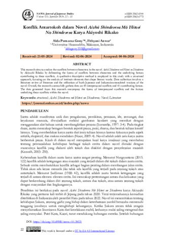 Alda, Purnama Gony and Fithyani, Anwar (2024) Konflik antartokoh dalam novel Aishū Shinderera Mō Hitori No Shinderera karya Akiyoshi Rikako. Journal of Japanese Studies (NAWA), 1 (1): 3. pp. 22-33. ISSN 3062-6773