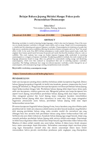 Idrus, Idrus (2024) Belajar bahasa Jepang melalui Manga: fokus pada pemerolehan onomatope. Journal of Japanese Studies (NAWA), 1 (1): 6. pp. 54-60. ISSN 3062-6773