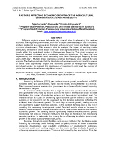 Fajar, Suryanto and Kusnandar, Kusnandar and Ernoiz, Antriyandarti (2024) Factors affecting economic growth of the agricultural sector in Karanganyar Regency. Jurnal Ekonomi Bisnis Manajemen Akuntansi (JEBISMA), 1 (3): 9. pp. 1-10. ISSN 3030-9743