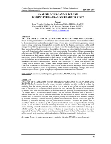 ardani, ard (2012) ANALISIS DOSIS GAMMA DI LUAR DINDING PERISAI RADIASI REAKTOR RISET. ANALISIS DOSIS GAMMA DI LUAR DINDING PERISAI RADIASI REAKTOR RISET. pp. 293-304. ISSN 0854-2910