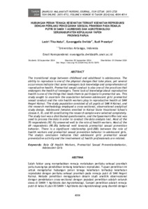 | Uncontrolled Keywords: | Peran tenaga kesehatan, Perilaku seksual pranikah, Remaja putri, Teenage girls, Health workers, Premarital sexual behavior, Reproductive health, Vocational education |