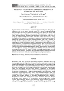 | Uncontrolled Keywords: | Pengetahuan, Sikap, Kebersihan menstruasi, Remaja, Hygiene, Teenage girls, Knowledge, Attitudes |
