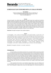 Dewi, Hafianti (2024) Koreografi kontemporer dengan lokasi spesifik. Jurnal Seni Pertunjukan (BERANDA), 1 (2): 2. pp. 16-24. ISSN 1979-7214