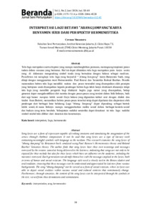 | Uncontrolled Keywords: | Interpretasi, Lagu, Hermeneutika, Songs, interpretation, Semiotics |