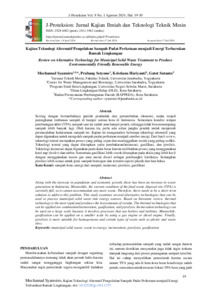 Seiring dengan bertambahnya jumlah penduduk dan pertumbuhan ekonomi, maka terjadi peningkatan timbunan sampah di hampir semua kota di Indonesia. Sementara kondisi tempat pembuangan akhir (TPA) sampah saat ini sudah atau hampir penuh, sehingga tidak bisa menampung sampah lebih banyak lagi. Oleh karena itu, perlu ada solusi jangka pendek untuk menjawab permasalahan kedaruratan sampah ini. Kajian ini menganalisis beberapa teknologi alternatif yang dapat digunakan untuk mengolah sampah padat perkotaan menjadi sumber energi. Dari hasil review, teknologi termal merupakan proses yang paling cepat dan meninggalkan residu yang paling sedikit. Teknologi termal yang dapat diterapkan yaitu pembakaran/insinerasi, gasifikasi, dan pirolisis. Teknologi insinerasi dapat digunakan pada skala besar karena melibatkan proses yang menggunakan ketel uap (boiler) dan turbin. Sementara gasifikasi lebih cocok diterapkan pada skala yang lebih kecil dengan menggunakan mesin gas atau mesin diesel sebagai pembangkit listriknya. Sedangkan pirolisis lebih sesuai untuk jenis sampah homogen dan tertentu seperti plastik dan ban bekas.
