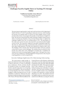 The government urged people to study and work from home at the beginning of March 2020 due to Covid-19 spreading in Indonesia; however, online learning has become very popular today. It is proven by many English courses in Pare provide online classes. One program that people are interested in is English for Kids. The previous study found that online teaching to English Young Learners (EYL) is not that easy; therefore, it has not been found a study to explore the challenges English tutors face in teaching online to EYL. The participants of this study were seventy-five tutors who teach EYL encountered online English courses in Pare. The researchers employed a descriptive quantitative approach. The data was collected through a questionnaire that consisted of 21 items and three open-ended questions. The data were analyzed by using the Likert scale. The findings of this research show that electricity failure and poor internet connectivity become crucial challenges. The students that are assisted by their parents also make tutors seem challenged in teaching EYL. Irregularly, the students feel bored in learning English through online. Although some tutors never join any workshop on Teaching English for Young Learners, they are good at giving guidance to teach young learners.