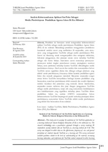 | Uncontrolled Keywords: | Aplikasi YouTube, Media pembelajaran, Pendidikan Agama Islam (PAI), Era milenial, Mass media, Educational media, Islamic education, Student life |