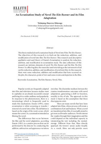 Rahajeng, Hauwwa Khissoga (2023) an ecranisation study of novel The Kite Runner and its film adaptation. Journal of English Language, Literature, and Teaching (ELLITE), 8 (1): 7. pp. 54-60. ISSN 2527-4120