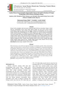 Muhammad, Zainur Ridlo and Nurhalim, Nurhalim and Asroful, Abidin (2024) Analisis potensi energi sampah sebagai sumber energi alternatif terbarukan di tempat pembuangan akhir Pakusari Kabupaten Jember. J-Proteksion : Jurnal Kajian Ilmiah dan Teknologi Teknik Mesin, 9 (1): 9. pp. 62-65. ISSN 2528-6382