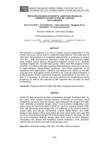 Rista, Elva Riani and Arief, Bakhtiar and Dewi, Setyowati and Manggala, Pasca Wardhana and Tri, Pudy Asmarawati (2024) Prevalensi kelainan kongenital janin pada kehamilan penderita HIV/AIDS di RSUD Dr. Soetomo Kota Surabaya. Manuju: Malahayati Nursing Journal, 6 (10): 38. pp. 4291-4298. ISSN 2655-2728