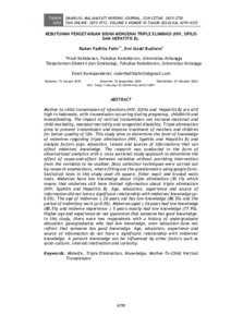 | Uncontrolled Keywords: | Bidan, Triple eliminasi, Pengetahuan, Penularan vertikal ibu ke anak, HIV, Syphilis, Hepatitis B, Midwifes, Disease transmission, Knowledge, Triple elimination |
