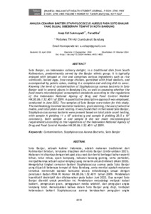 Asep, Edi Sukmayadi and Faradiba, Faradiba (2024) Analisa cemaran bakteri Staphylococcus aureus pada soto Banjar yang dijual di beberapa tempat di Kota Bandung. MAHESA: Malahayati Health Student Journal, 4 (10): 4. pp. 4219-4227. ISSN 2746-198X