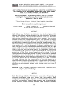 | Uncontrolled Keywords: | CLMA (Close Loop Medication Administration), Medication error adoption, Sistem technology, Medication systems in hospitals, Medication error |