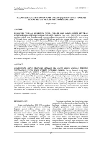 DIAGNOSIS PENUAAN KOMPONEN PANEL CHILLER QKJ 10/20/30 SISTEM VENTILASI GEDUNG RSG-GAS MENGGUNAKAN INFRARED CAMERA. Panel chiller QKJ 10/20/30 merupakan peralatan elektrik yang digunakan untuk mengoperasikan sistem penyedia air dingin (chiller water system, CWU) pada sistem ventilasi gedung reaktor RSG-GAS yang terdiri atas terminal kabel, oil pressure control, fan temperature control, timer, BT2 thermostat, NH fuse 100 A, kabel, MCB motor fan dan pompa, serta main circuit breaker. Untuk menunjang keselamatan operasi reaktor RSG-GAS, telah dilakukan diagnosis penuaan terhadap komponen panel chiller QKJ 10/20/30 dengan menggunakan infrared camera type thermo tracer TH9100PM VI/PW VI. Hasil diagnosis menunjukkan bahwa temperatur pada bagian terminal kabel MCB QKJ 10 mengalami kenaikan yang berarti dan dapat menyebabkan overheating. Kenaikkan temperatur yang sangat berarti ini dikhawatirkan dapat menimbulkan dampak degradasi atau penurunan kemampuan fungsi hingga terjadi kegagalan sebagian atau seluruh sistem yang terkait sehingga perlu segera dilakukan tindakan preventive maintenance, predictive maintenance dan safety terhadap komponen dan sistem tersebut.
