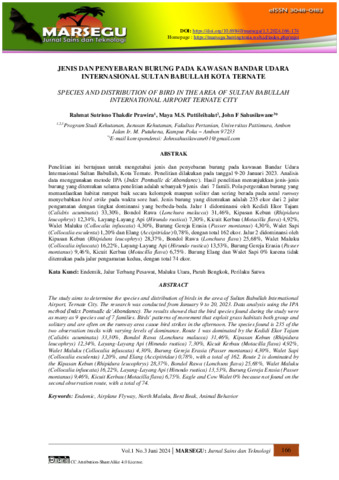 Rahmat, Sutrisno Thakdir Prawira and Maya, M.S. Puttileihalat and John, F Sahusilawane (2024) Jenis dan penyebaran burung pada kawasan Bandar Udara Internasional Sultan Babullah Kota Ternate. Marsegu: Jurnal Sains dan Teknologi, 1 (3): 3. pp. 166-174. ISSN 3048-0183