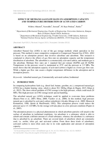Alhamid, M.Idrus and Nasruddin, Nasruddin and Senoadi, Senoadi and Perdana, M. Bayu and Ratiko, Ratiko (2015) EFFECT OF METHANE GAS FLOW RATE ON ADSORPTION CAPACITY AND TEMPERATURE DISTRIBUTION OF ACTIVATED CARBON. International Journal of Technology (2015) 4, 4. pp. 336-345. ISSN 2086-9614