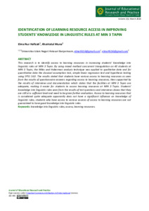Elma, Nur Hafizah and Khairiatul, Muna (2024) Identification of learning resource access in improving students' knowledge in linguistic rules at MIN 3 Tapin. Journal of Educational Research and Practice, 2 (1): 2. pp. 11-29. ISSN 3062-7613