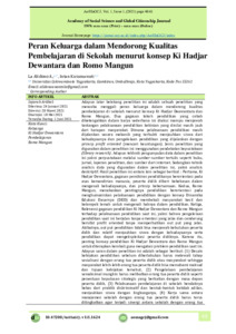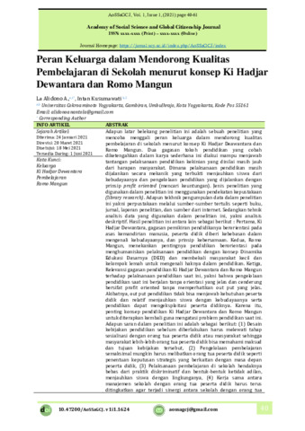 La, Alidono A and Intan, Kusumawati (2021) Peran keluarga dalam mendorong kualitas pembelajaran di sekolah menurut konsep Ki Hadjar Dewantara dan Romo Mangun. Academy of Social Science and Global Citizenship Journal, 1 (1): 5. pp. 40-61. ISSN 2988-7968