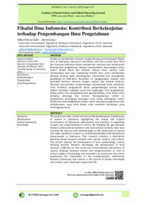 Artikel ini memberikan tinjauan singkat tentang perkembangan filsafat ilmu di Indonesia, menyoroti kontribusi unik dan orisinal para filsuf dan ilmuwan Indonesia dalam memperluas wawasan dan pemahaman tentang ilmu pengetahuan. Dengan menjembatani kesenjangan antara tradisi filsafat Barat dan konteks budaya lokal, mereka telah memperkaya teori dan metodologi filsafat ilmu serta memberikan dampak penting pada pembangunan masyarakat dan peningkatanpendidikan di Indonesia. Penelitian ini menggunakan metode riset deskriptif berbasis literatur dengan analisis dan kriteria tertentu. Hasilnya menunjukkan pengembangan epistemologi lokal, pemikiran kritis terhadap pengetahuan Barat, pengembangan konsep lokal, refleksi terhadap implikasi sosial dan lingkungan ilmu pengetahuan, dialog antara ilmu pengetahuan dan agama/budaya, serta kajian kritis terhadap teknologi dan inovasi. Kesimpulannya, artikel ini menekankan pentingnya hubungan yang saling melengkapi antara filsafat dan ilmu pengetahuan dalam upaya mencapai pengetahuan dan kebijaksanaan yang lebih dalam serta menjalani kehidupan yang bertanggung jawab.
