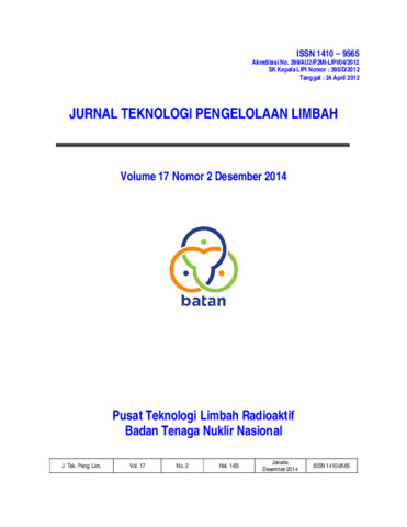| Subjects: | Taksonomi BATAN > Daur Bahan Bakar Nuklir dan Bahan Maju > Limbah Radioaktif > Teknik Pengolahan Limbah Radioaktif Taksonomi BATAN > Daur Bahan Bakar Nuklir dan Bahan Maju > Limbah Radioaktif > Teknik Pengolahan Limbah Radioaktif |