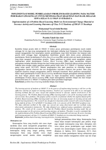 Muhammad, Yusuf Abdul Rochim and Pramita, Yakub dan Aini (2024) Implementasi model pembelajaran problem based learning pada materi perubahan lingkungan untuk meningkatkan keaktifan dan hasil belajar siswa kelas X-12 SMAN 15 Surabaya. Jurnal Inkredibel, 1 (1): 2. pp. 7-12. ISSN 3063-2404