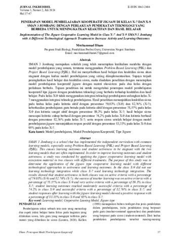 Mochammad, Ilham (2024) Penerapan model pembelajaran kooperatif jigsaw di kelas X-7 dan X-9 SMAN 3 Jombang dengan perlakuan pendekatan teknologi yang berbeda untuk meningkatkan keaktifan dan hasil belajar. Jurnal Inkredibel, 1 (1): 7. pp. 37-47. ISSN 3063-2404