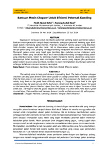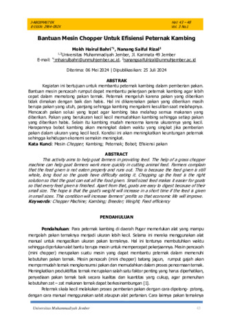 Mokh, Hairul Bahri and Nanang, Saiful Rizal (2024) Bantuan mesin chopper untuk efisiensi peternak kambing. Abdimastek, 3 (1): 6. pp. 43-48. ISSN 2964-092X