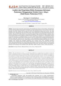 Keamanan data penting untuk organisasi dan perusahaan sebab tujuan dari keamanan informasi adalah menjaga integritas, kerahasiaan serta ketersediaan di organisasi atau perusahaan. Ketika tidak diperlakukan dengan tepat dan benar, yang mengarah pada masalah dan peringatan yang tidak disangka bagi organisasi. Tujuan penelitian ini untuk analisis dan klarifikasi dalam keamanan Sistem Informasi Puskesmas XYZ. Puskesmas XYZ dalam manajemen informasi, mereka tidak pernah mengukur risiko dan tidak menerapkannya manajemen risiko. Untuk menganalisis masalah yang mungkin ada pada Puskesmas XYZ, octave allegro digunakan dalam research ini. Puskesmas XYZ mendapat saran untuk simulasi visual dengan mengontrol serta membantu karyawannya mengerti arti dari informasi yang dimaksud, berikut ancaman serta risiko yang akan terjadi.