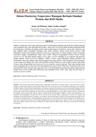 Kunto, Aji Wibisono and Raka, Nurifan Almajid (2024) Sistem monitoring temperature ruangan berbasis simulasi proteus dan RAD studio. Jurnal Teknik Elektro dan Komputasi (ELKOM), 6 (2): 14. pp. 262-267. ISSN 2685-1814