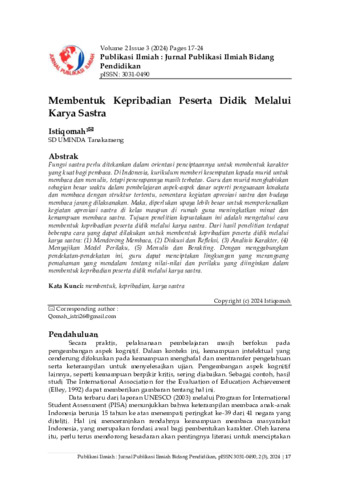 Istiqomah, Istiqomah (2024) Membentuk kepribadian peserta didik melalui karya sastra. Publikasi Ilmiah: Jurnal Publikasi Ilmiah, 2 (3): 3. pp. 17-24. ISSN 3031-0490
