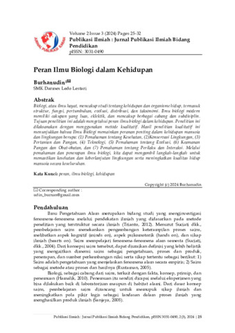 Burhanudin, Burhanudin (2024) Peran ilmu biologi dalam kehidupan. Publikasi Ilmiah: Jurnal Publikasi Ilmiah, 2 (3): 4. pp. 25-32. ISSN 3031-0490