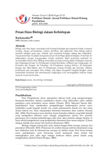 Biologi, atau ilmu hayat, mencakup studi tentang kehidupan dan organisme hidup, termasuk struktur, fungsi, pertumbuhan, evolusi, distribusi, dan taksonomi. Ilmu biologi modern memiliki cakupan yang luas, eklektik, dan mencakup berbagai cabang dan subdisiplin. Tujuan penelitian ini adalah mengetahui peran ilmu biologi dalam kehidupan. Penelitian ini dilaksanakan dengan menggunakan metode kualitatif. Hasil penelitian kualitatif ini menunjukkan bahwa Ilmu Biologi memainkan peranan penting dalam kehidupan manusia dan lingkungan berupa: (1) Pemahaman tentang Kesehatan, (2)Konservasi Lingkungan, (3) Pertanian dan Pangan, (4) Teknologi, (5) Pemahaman tentang Evolusi, (6) Keamanan Pangan dan Obat-obatan, dan (7) Pemahaman tentang Perilaku dan Interaksi. Melalui pemahaman dan penerapan ilmu biologi, kita dapat mengambil langkah-langkah untuk memastikan kesehatan dan keberlanjutan lingkungan serta meningkatkan kualitas hidupmanusia secara keseluruhan.