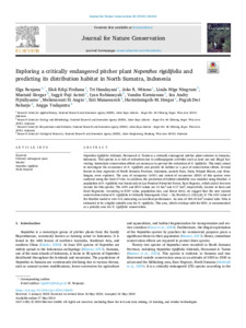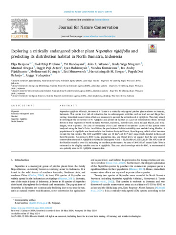 Elga, Renjana and Elok, Rifki Firdiana and Tri, Handayani and Joko, R. Witono and Linda, Wige Ningrum and Mustaid, Siregar and Inggit, Puji Astuti and Iyan, Robiansyah and Vandra, Kurniawan and Izu, Andry Fijridiyanto and Melisnawati, H. Angio and Esti, Munawaroh and Hartutiningsih, M. Siregar and Puguh, Dwi Raharjo and Puguh, Dwi Raharjo (2024) Exploring a critically endangered pitcher plant Nepenthes rigidifolia and predicting its distribution habitat in North Sumatra, Indonesia. Journal for Nature Conservation, 80. pp. 1-8. ISSN 1617-1381