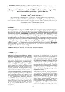 Ferinda, Utami and Ratna, Meidyawati (2023) Pengambilan file patah pada gigi molar pertama atas dengan alat ultrasonik dan mikroskop (laporan kasus). In: Prosiding KPPIKG 2023: The 19th Scientific Meeting and Refresher Coursein Dentistry, Faculty of Dentistry, Universitas Indonesia, 2-4 Februari 2023, Jakarta Convention Center.