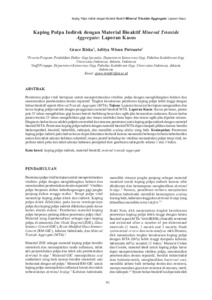 Grace, Riska and Aditya, Wisnu Putranto (2023) Kaping pulpa indirek dengan material bioaktif Mineral Trioxide Aggregate: laporan kasus. In: Prosiding KPPIKG 2023: The 19th Scientific Meeting and Refresher Coursein Dentistry, Faculty of Dentistry, Universitas Indonesia, 2-4 Februari 2023, Jakarta Convention Center.